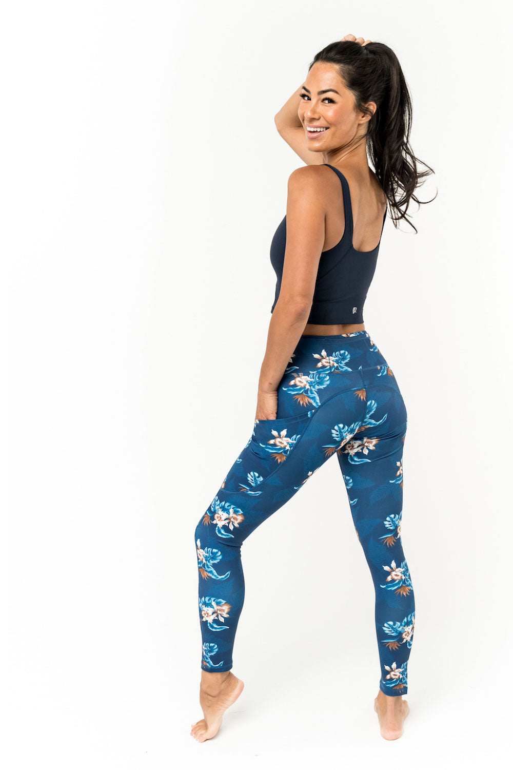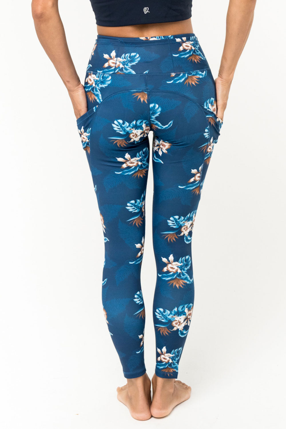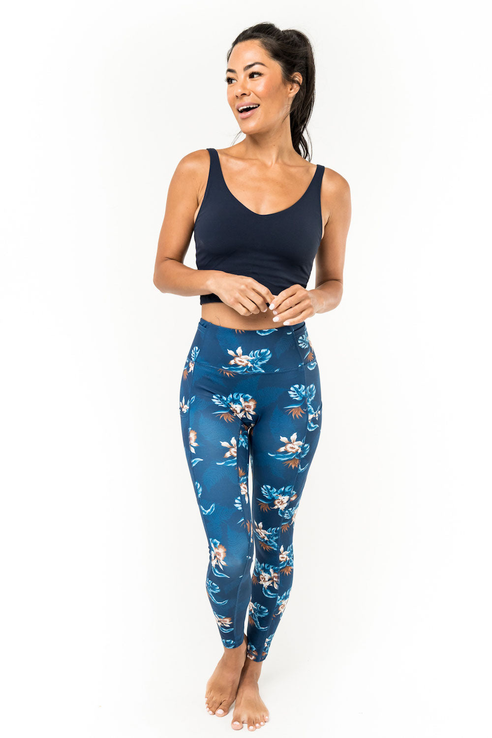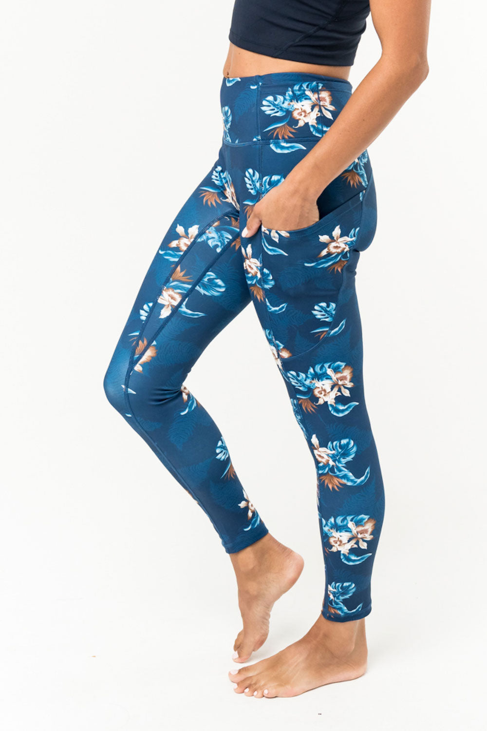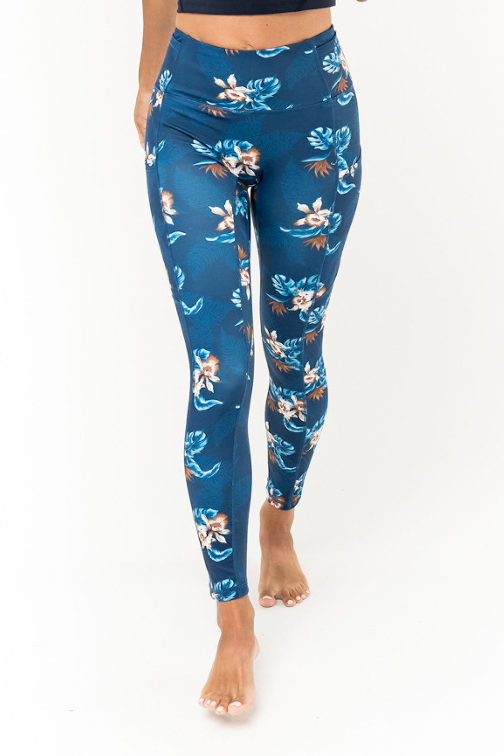 Our "bring-it" Warrior leggings are just what you need to conquer tough workouts or keep running. Mid-rise waist with 3 1/2" waistband. High compression fabric and 5 pockets let you be fabulously athletic while storing your phone, ear buds and keys. Made from eco-friendly recyclable nylon. 25" inseam hits above ankle. SKU# 22L3