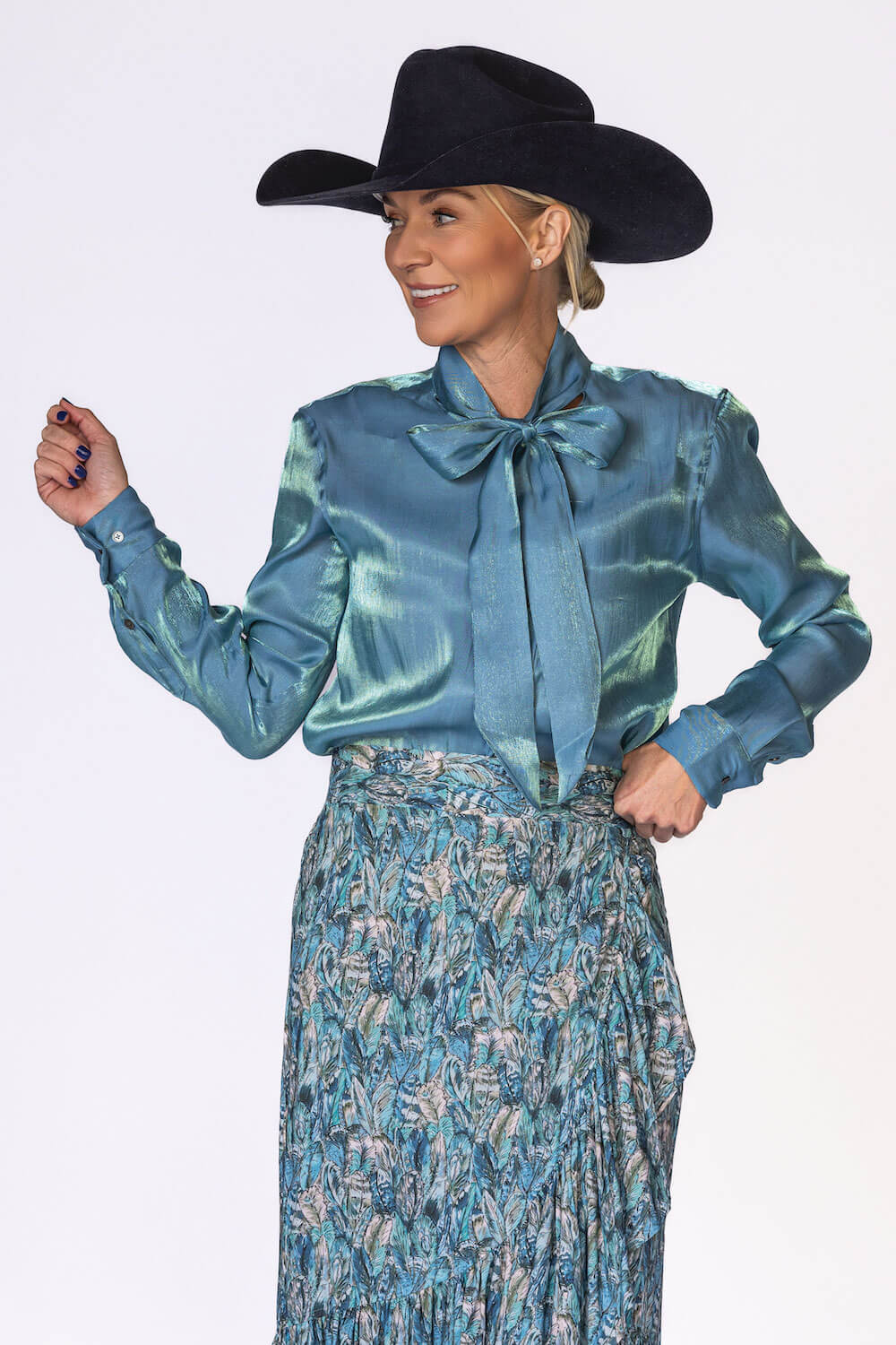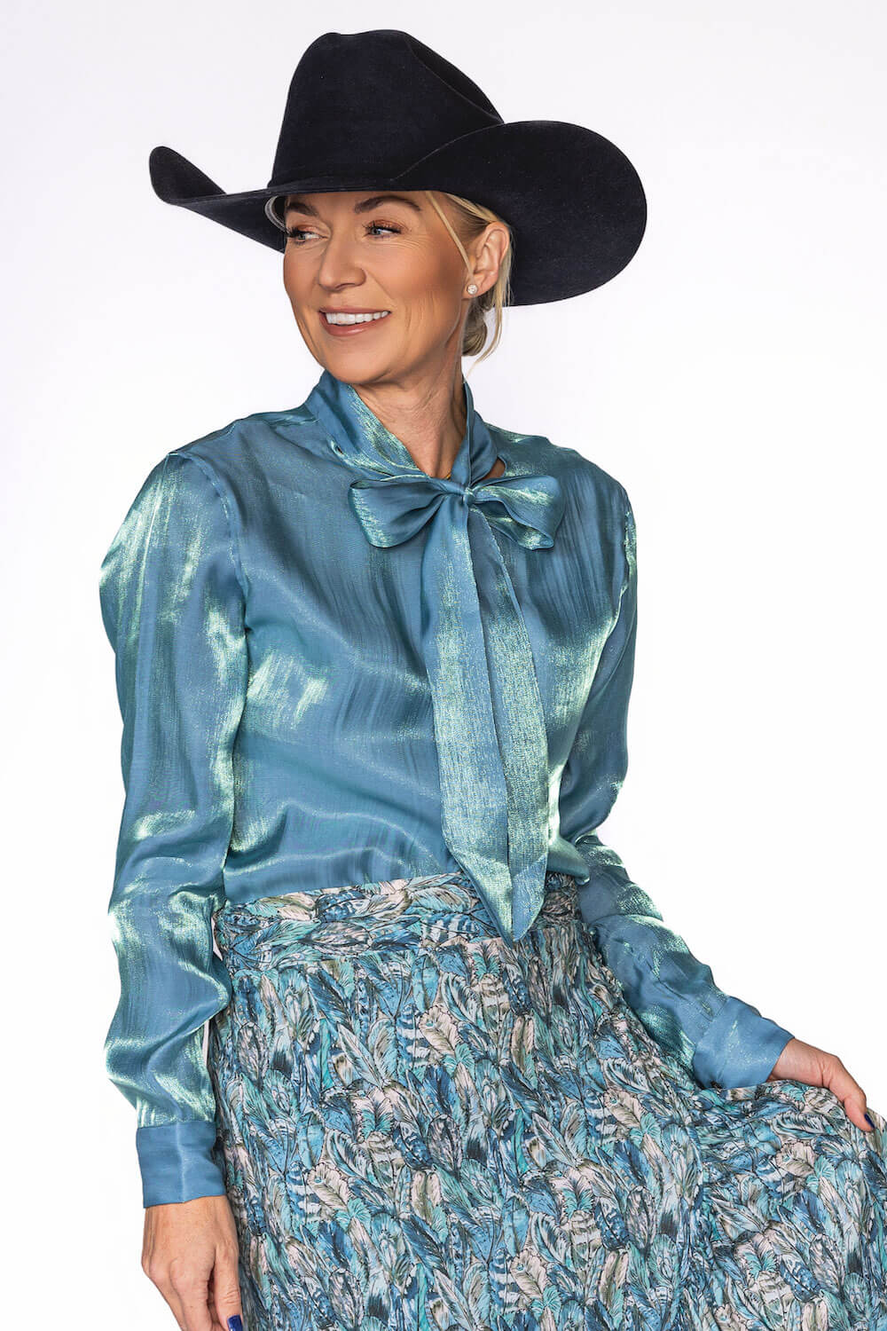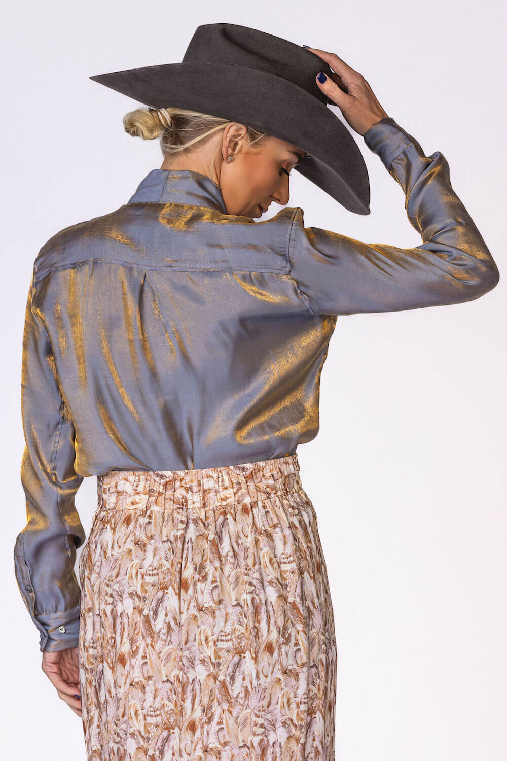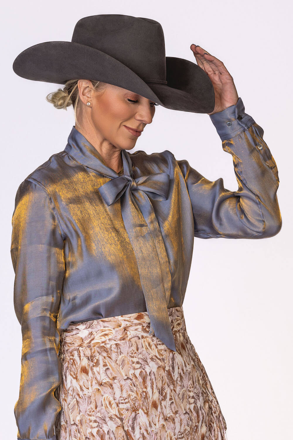 Subtle shimmer meets timeless elegance in the Belle Top. Crafted from a beautiful iridescent rayon–nylon blend, this top catches the light just enough to make you stand out with effortless class. Lightweight and fluid, it drapes softly for a refined, flattering fit. Designed with a button-front closure and an attached bow tie, the Belle Top adds a feminine finish that feels both modern and sophisticated. Available in our stunning spring shades Sand and Sunset Orange, it’s the perfect piece for elevating everyday looks or dressing up for special moments. Key Features
