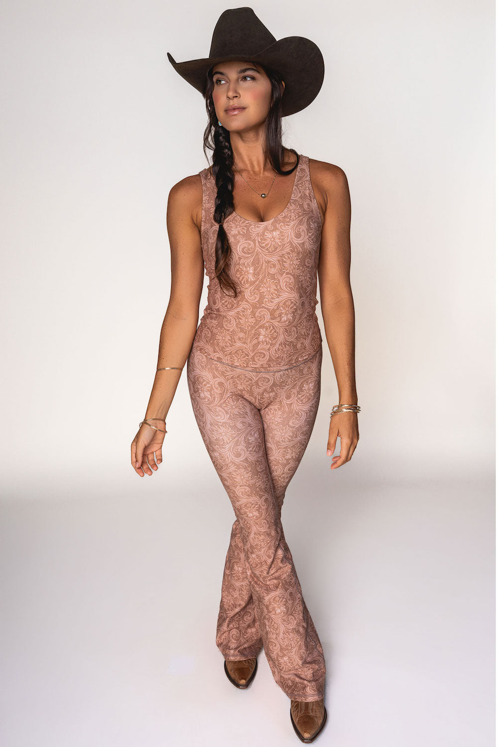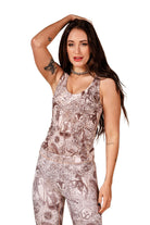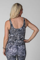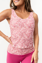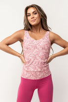 This bra-meets-tank is flattering, functional and fashionable. The front and back both scoop for a feminine look that can be worn on the street or in the gym. Wear also as a fitted tank top or layered. SKU# 23SB665