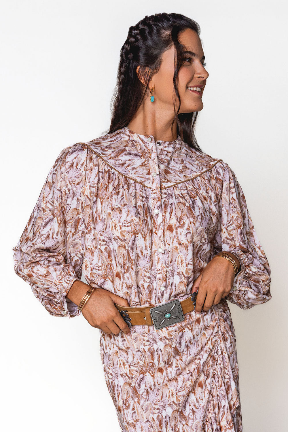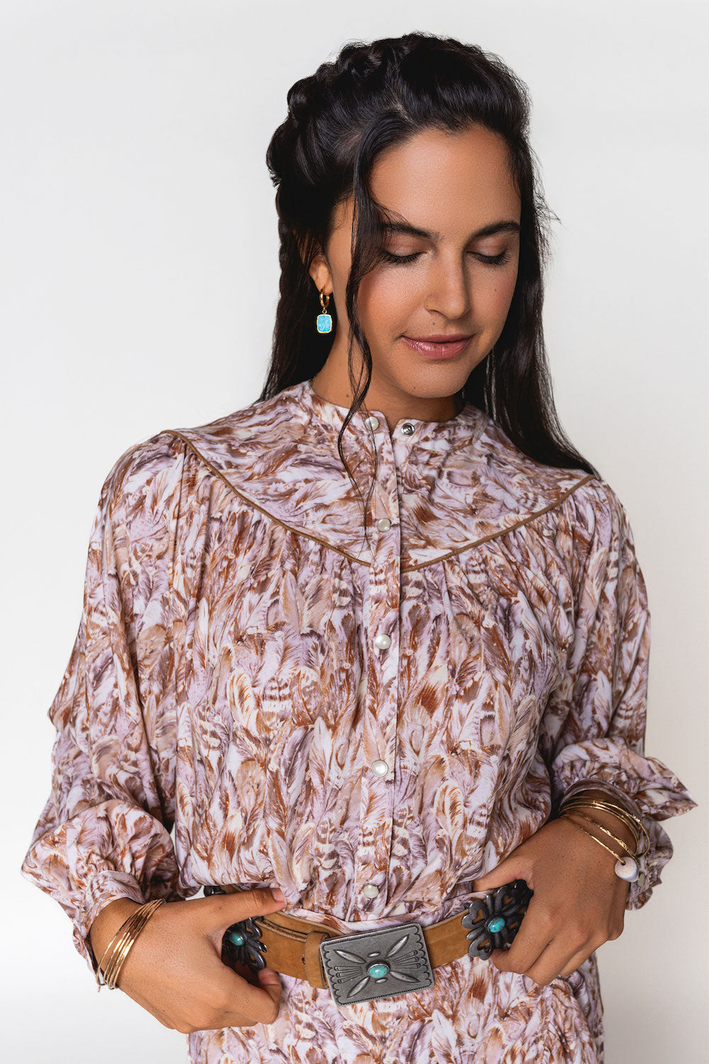 This isn’t your average pearl snap shirt — this lightweight, long sleeve western shirt is crafted with sleek leather piping, a mandarin collar, and full sleeves for a polished finish. Designed to stand out, it brings timeless style with a modern, confident twist. 100% Rayon. SKU# 25WS1803.