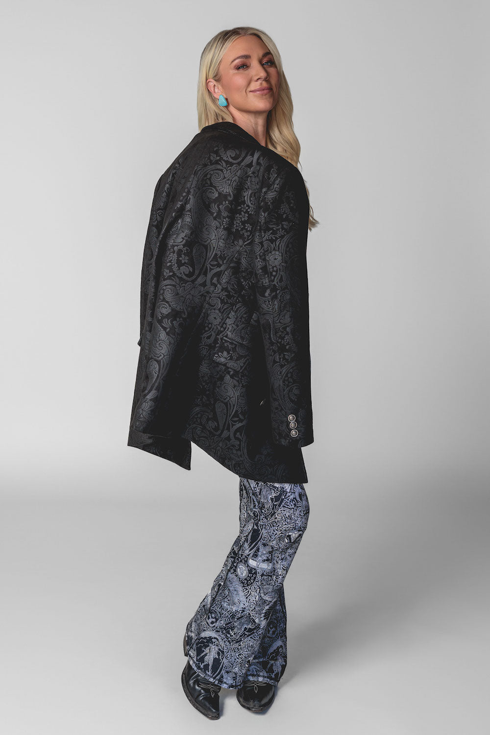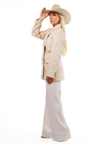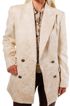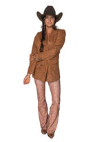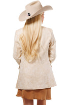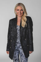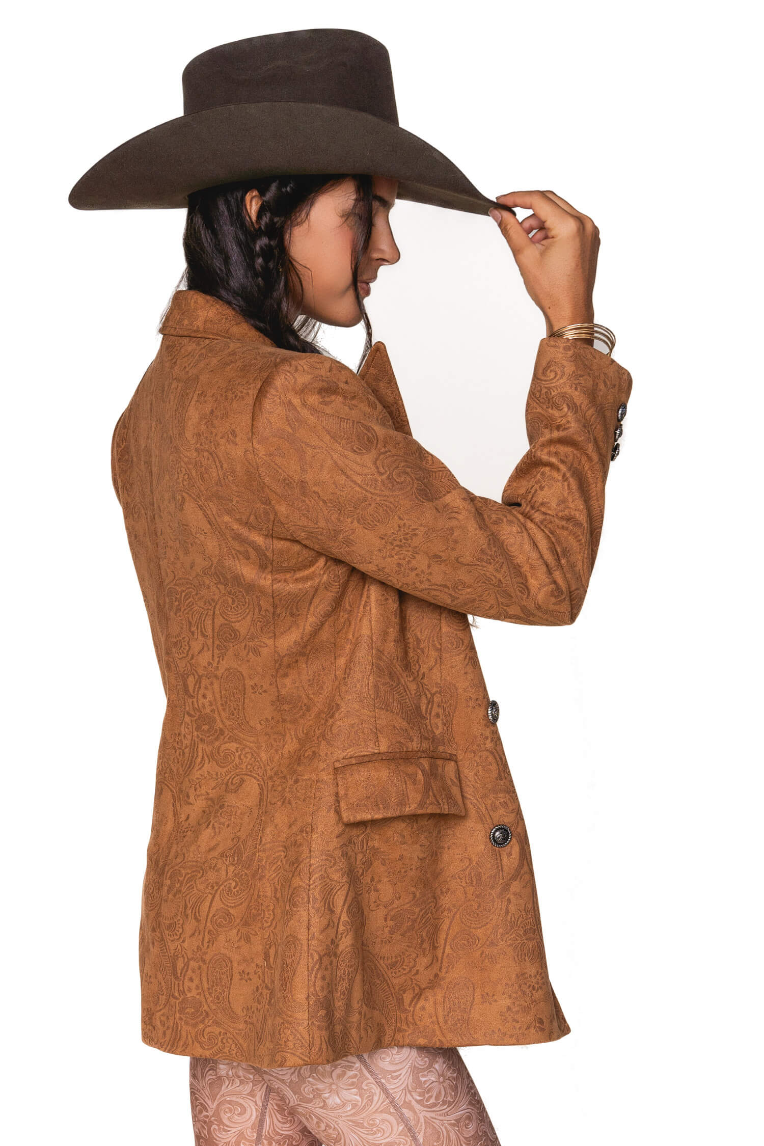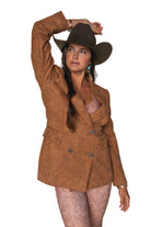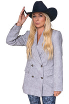 "I love nothing more than a classic blazer with unique finishing touches. The embossed vegan suede and button details add a feminine, flirty flair, while the tailored fit ensures a one-of-a-kind look. This versatile staple is a must-have for every wardrobe!"