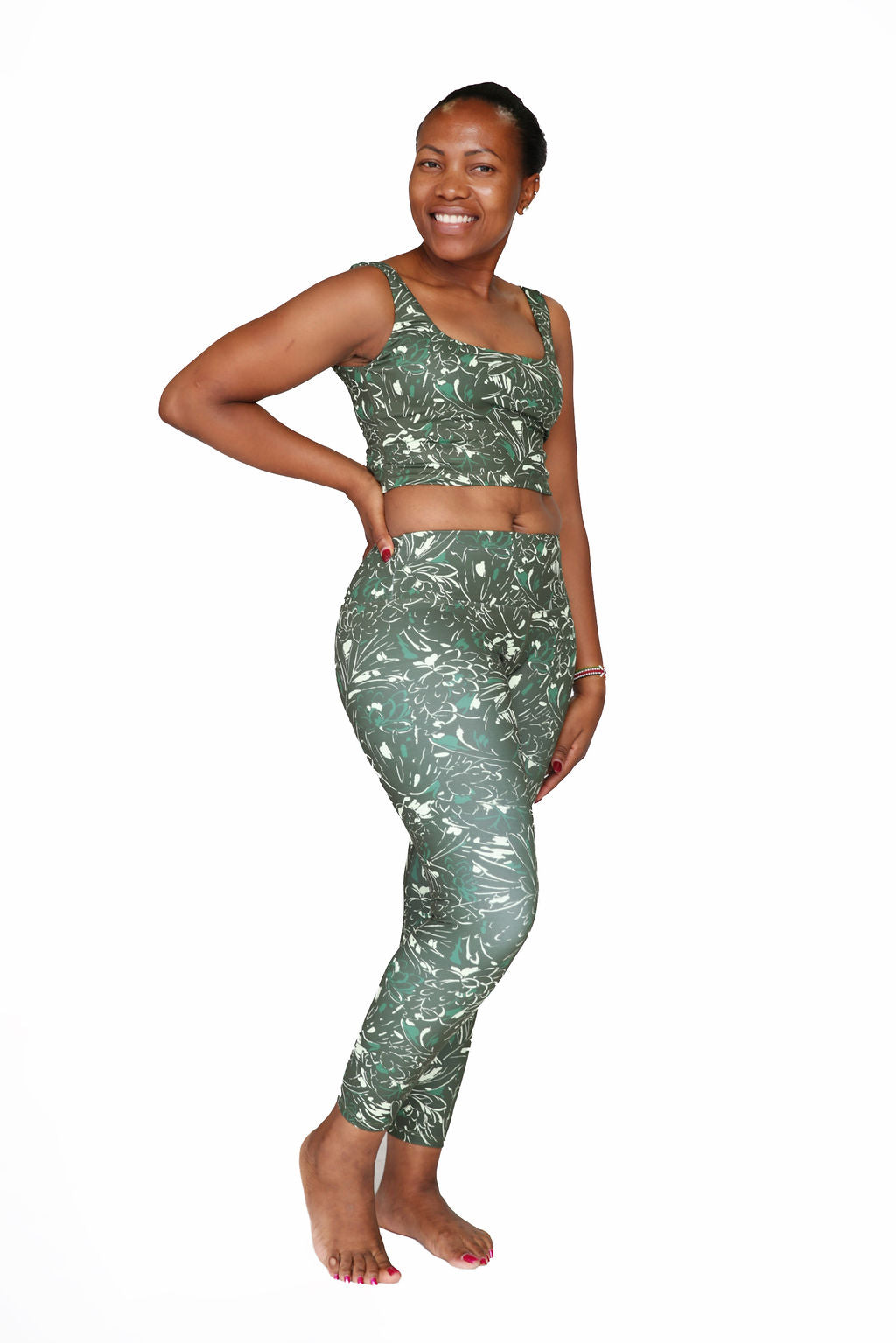 There are times in your life when you come to a "Crossroad," and need to decide what to buy. This full-length mid-compressing "Crossroad" legging leads the LOVLEI way, with its adorable waistband detail, with a crossover side-seam that helps accentuate those beautiful curves. These eco-friendly, recyclable moisture wicking leggings are made from nylon and spandex and boast a 24" inseam. They hit just above the ankle. SKU #22L7.