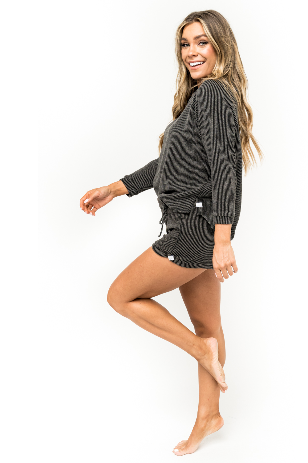 The ultra-cute short is made from our "Urban Love" comfy rib fabric. It's perfect for lounging around and/or working out. This unique short has a sweet side-tie on an elastic waist band that provides just the right fashion flare. Poly/rayon/Spandex blend SKU# 22SHO954.