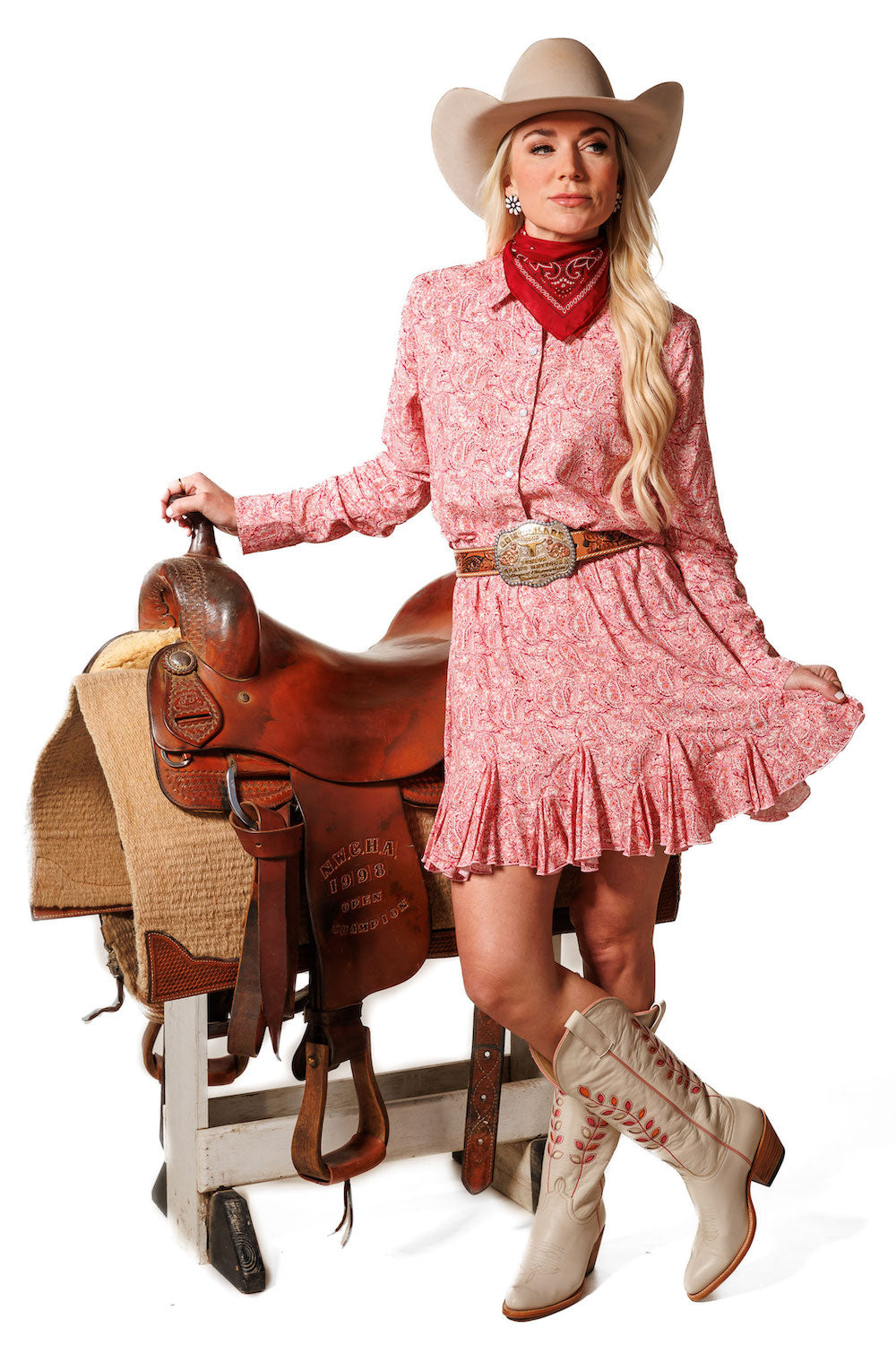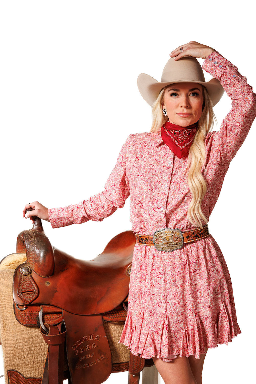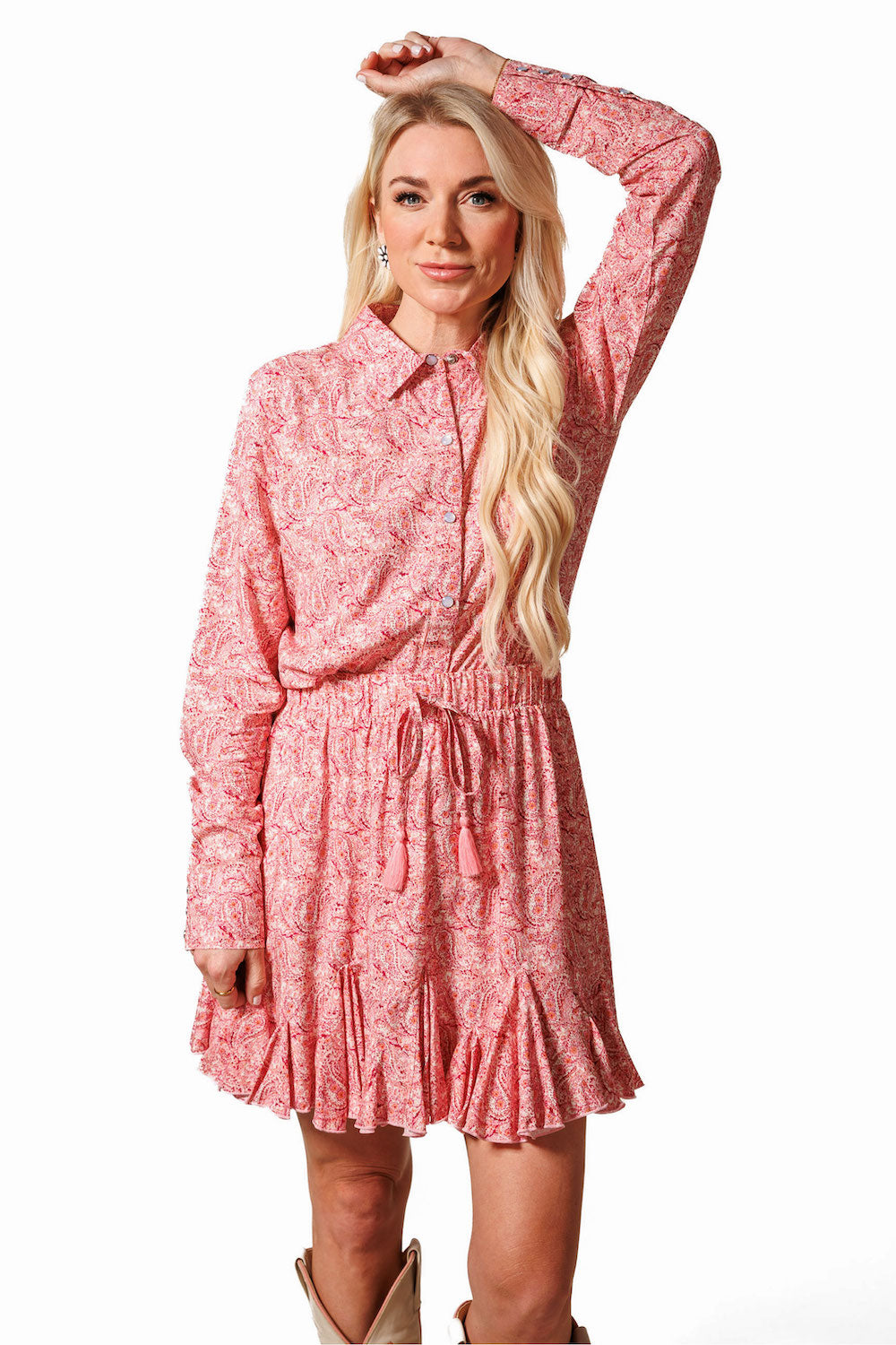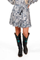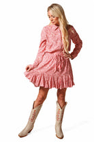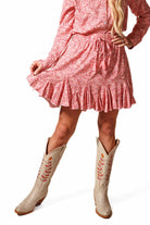 This flirty short skirt features a pleated ruffle along the hem that adds movement and volume with every step. The moment you slip it on, you'll feel the fabric come to life, making you want to dance! It has an elastic waistband for easy on-and-off and a cute tassel tie at the waist for that extra touch of charm. 100% Rayon poplin SKU# 24SK1702