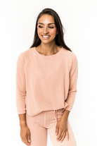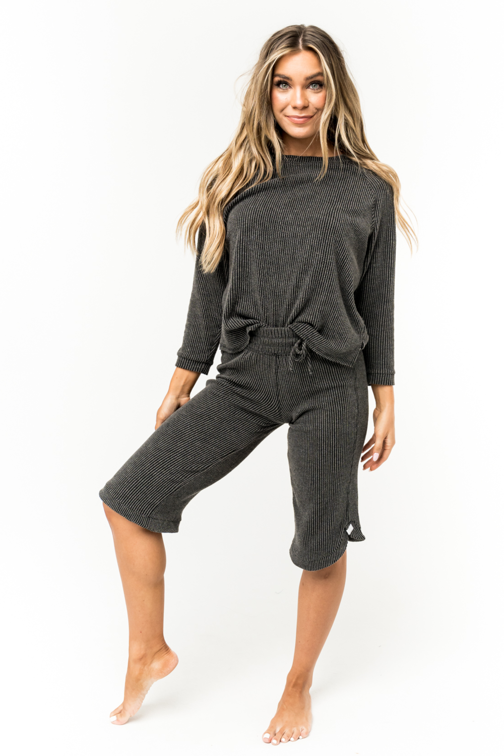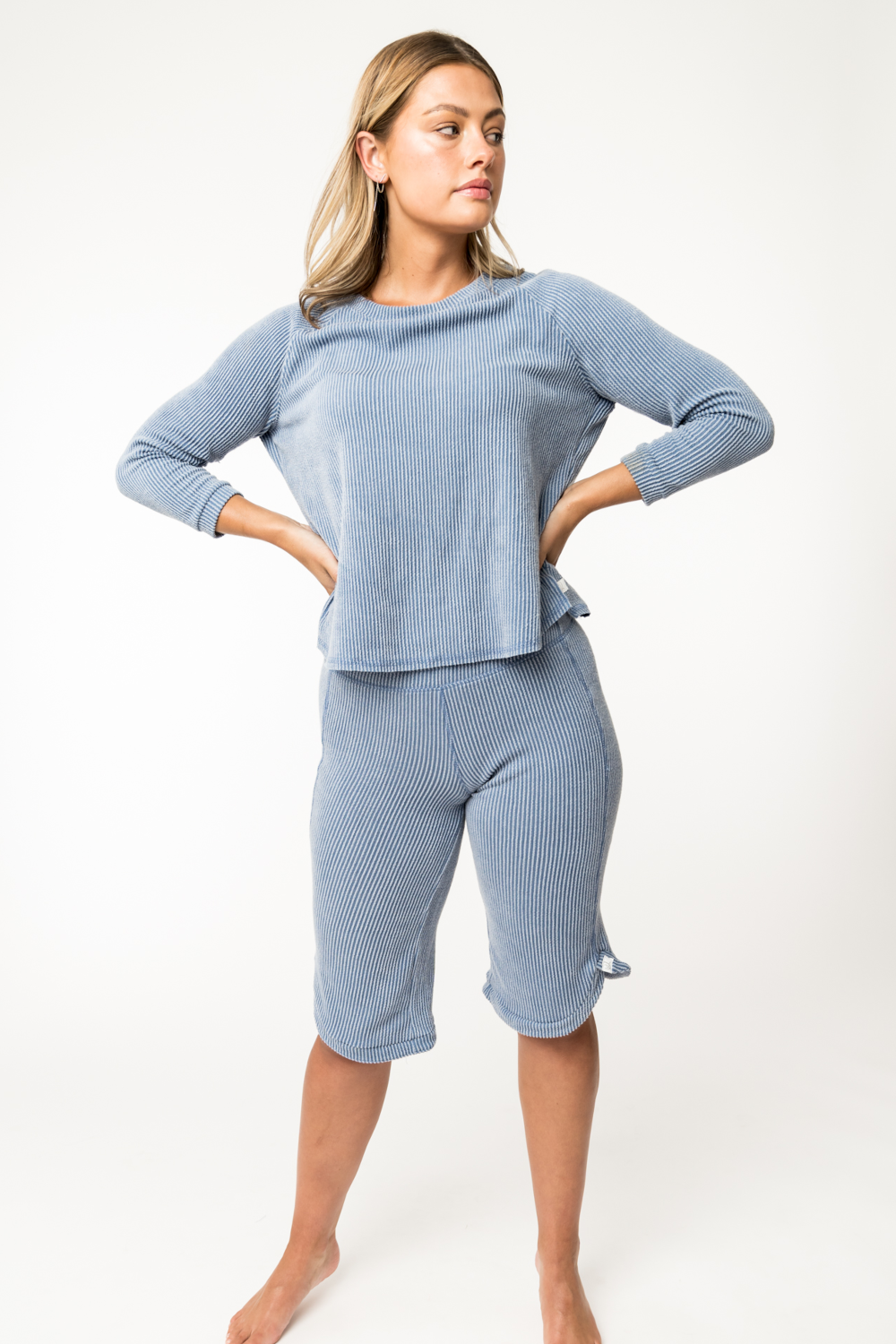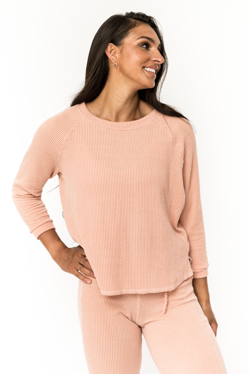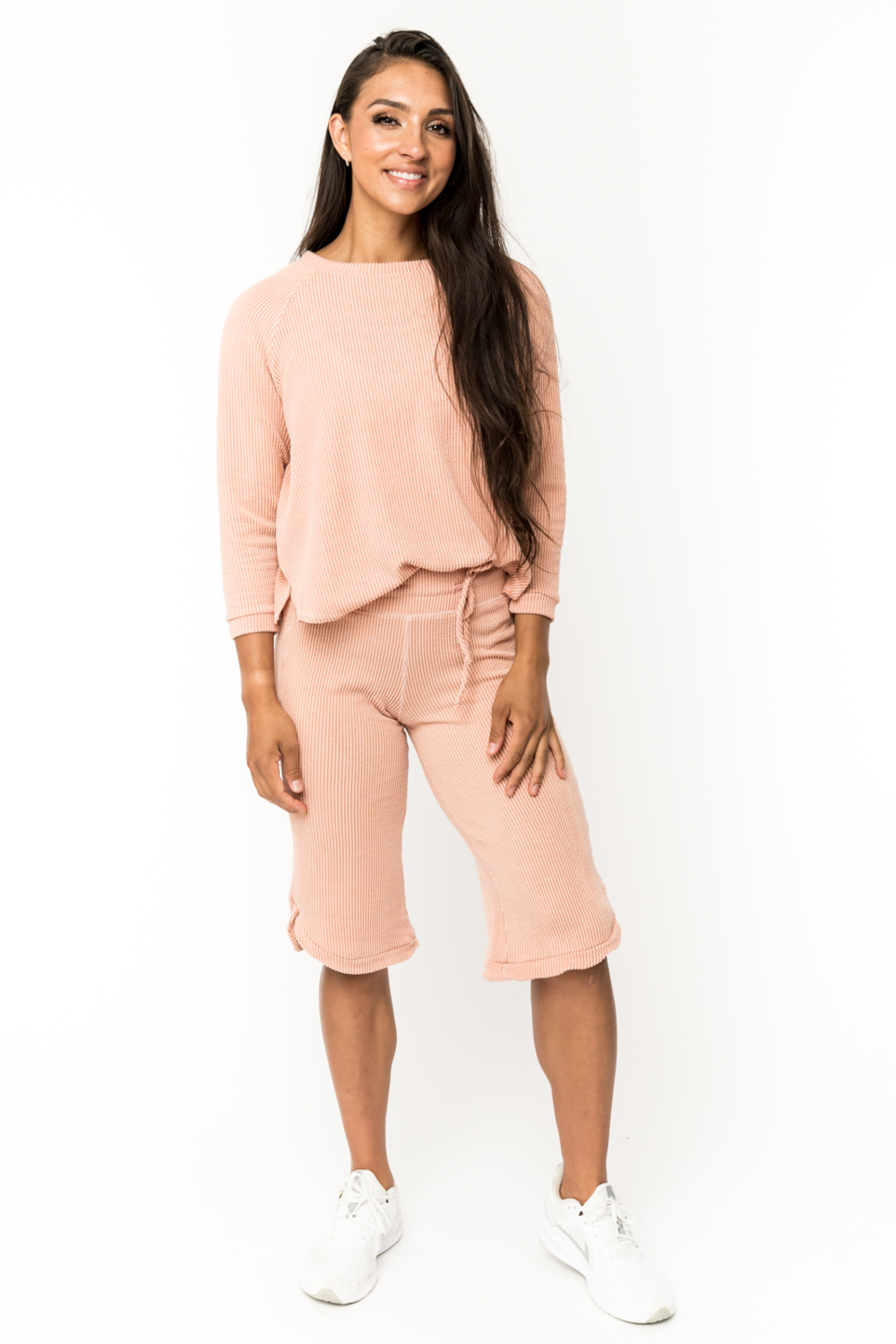 This go-to "Cape Cod" crew neck pullover is great for chilly mornings, or evenings. It's the perfect weight for a sweatshirt (not too light & not too heavy) and is made out of our trending "Urban Love" ribbed fabric. There's a bit of a flare with the longer hem line in the back, while being a bit shorter in the front. This is a great piece to pair-up with our "HB Short" or "Pismo Capri "for a really cute set. You can also mix it up with our activewear! Polyester/Rayon/Spandex blend. SKU# 22T210.