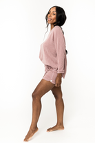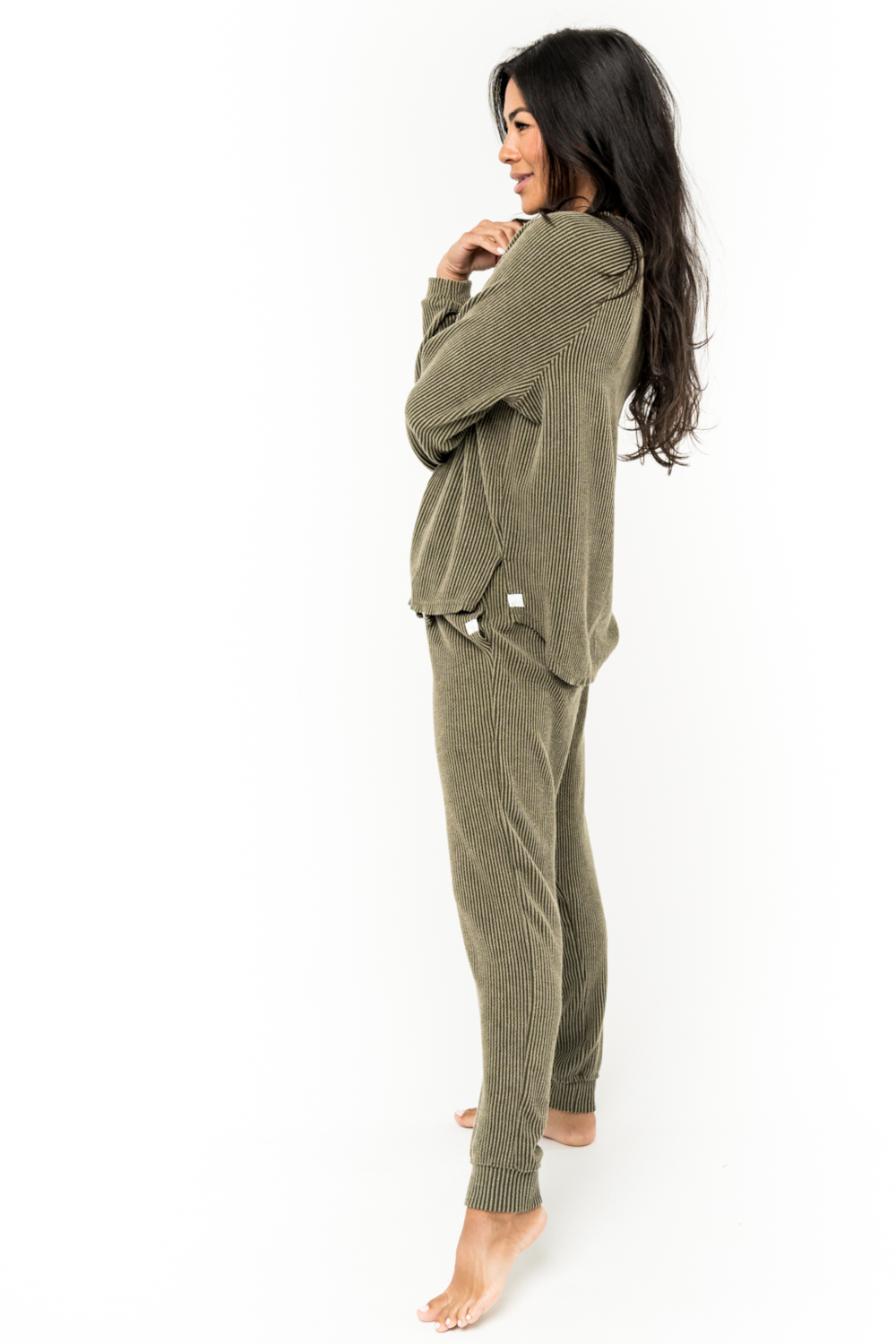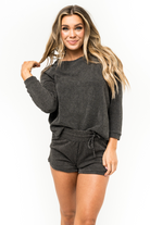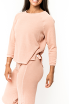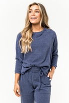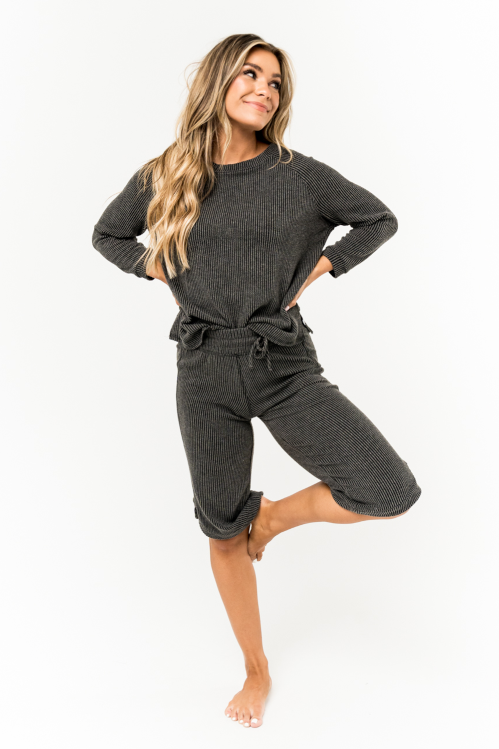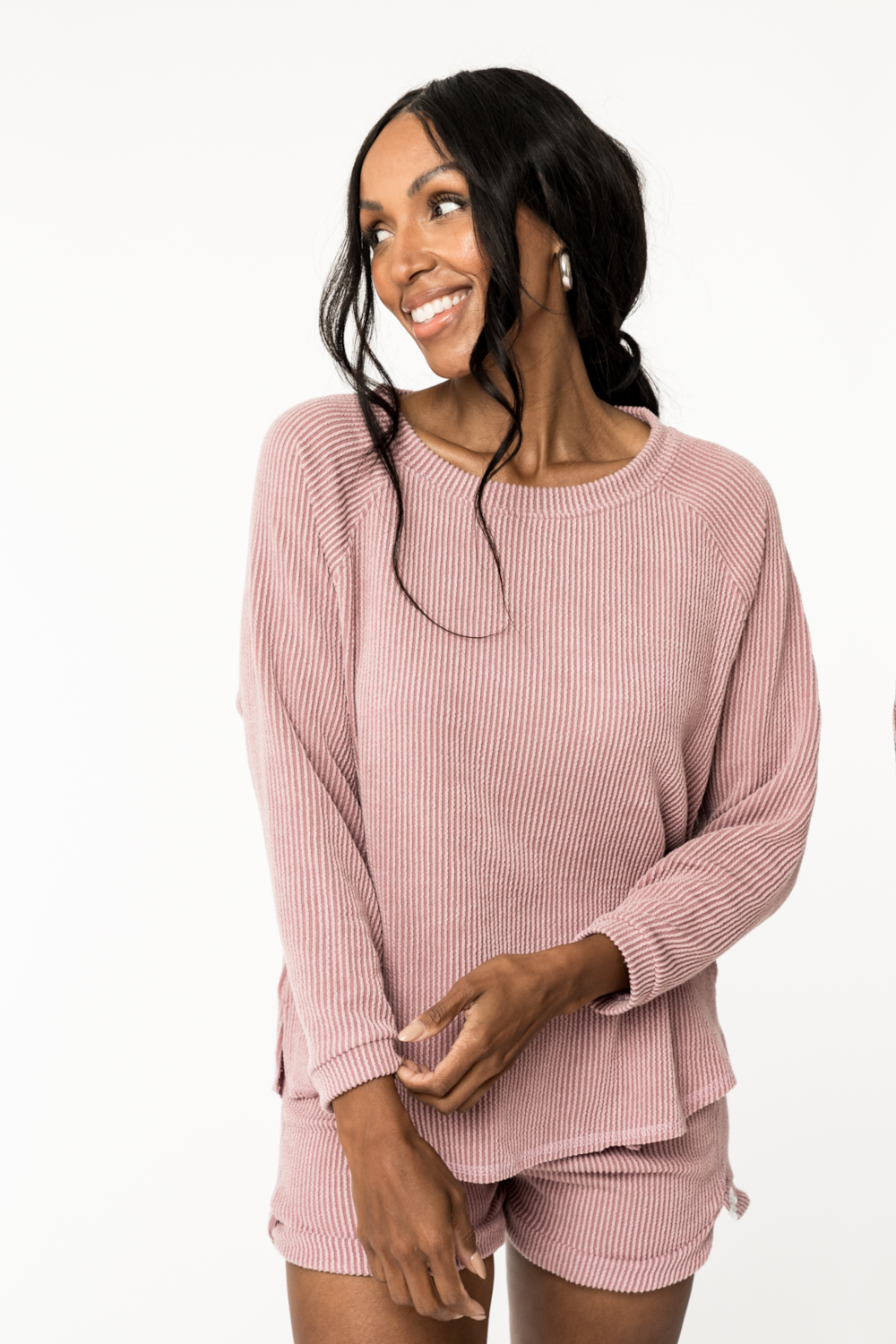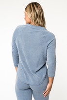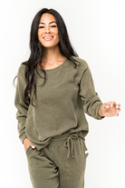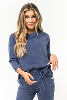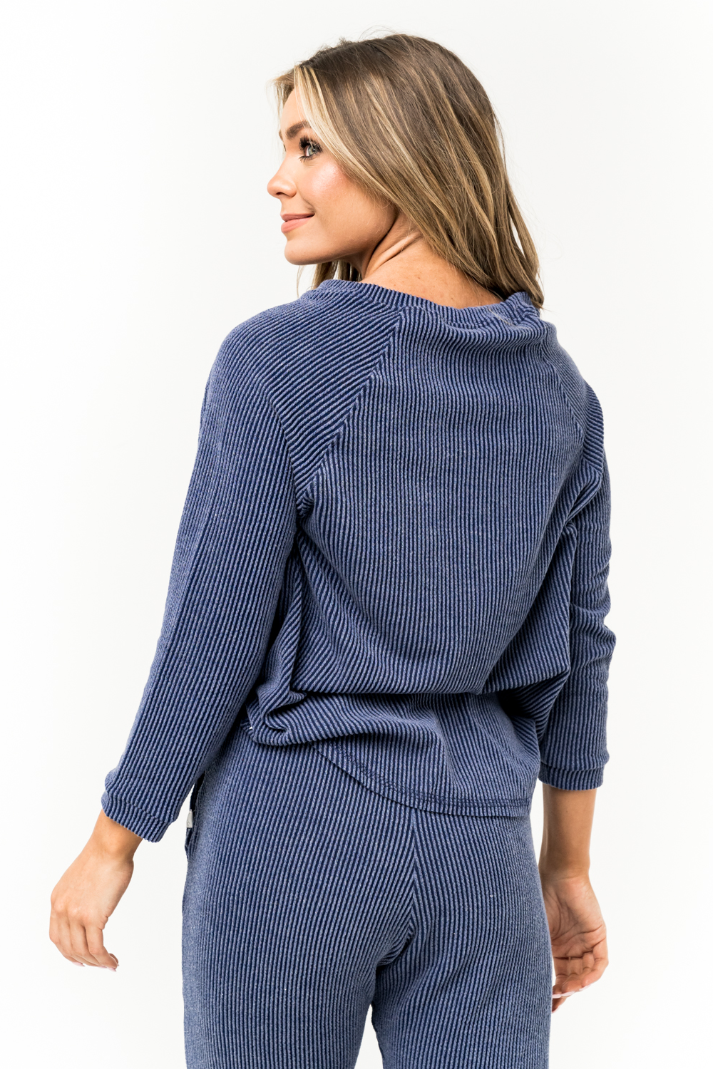 This go-to "Cape Cod" crew neck pullover is great for chilly mornings, or evenings. It's the perfect weight for a sweatshirt (not too light & not too heavy) and is made out of our trending "Urban Love" ribbed fabric. There's a bit of a flare with the longer hem line in the back, while being a bit shorter in the front. This is a great piece to pair-up with our "HB Short" or "Pismo Capri "for a really cute set. You can also mix it up with our activewear! Polyester/Rayon/Spandex blend. SKU# 22T210.