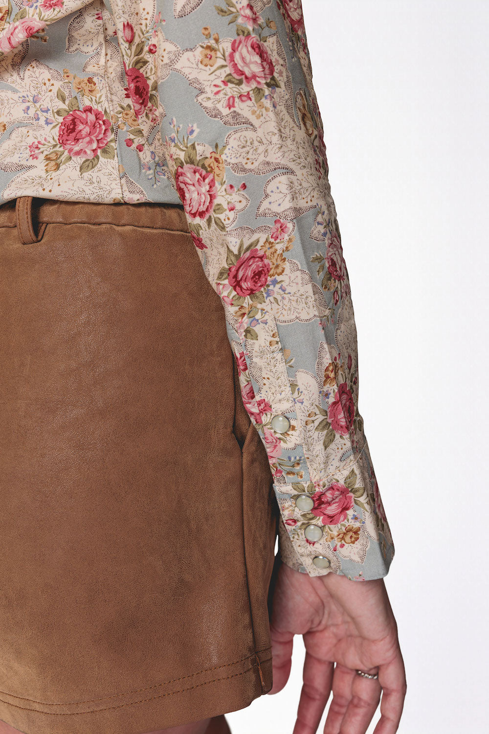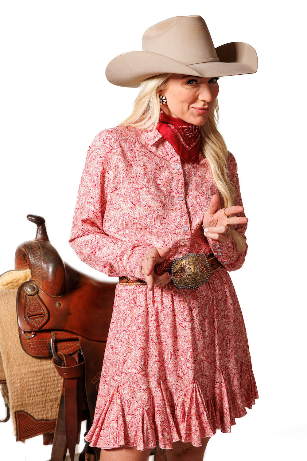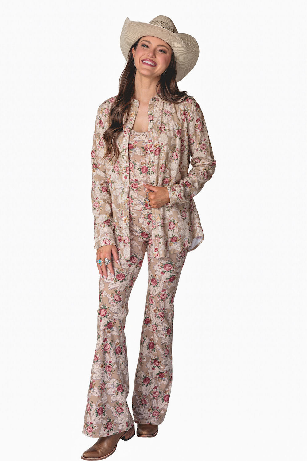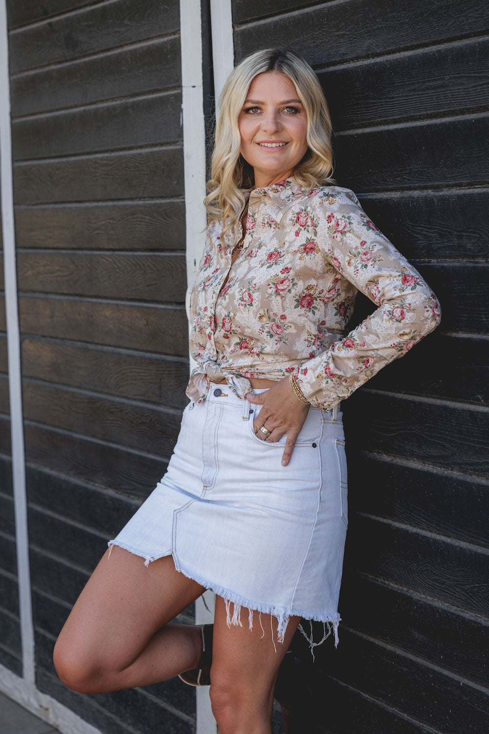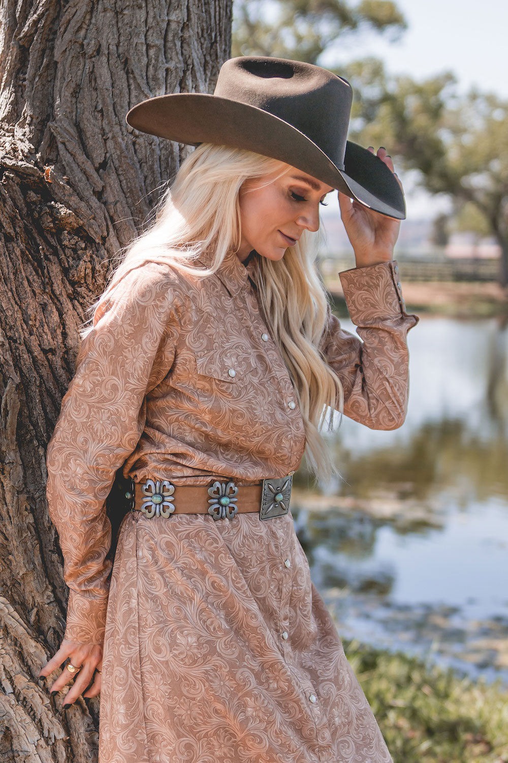 A reimagined balance of traditional western charm and contemporary chic, sure to become a staple in any coastal cowgirl’s closet. Both function and fashion-forward, this 100% Rayon poplin darling has pearl snap buttons and a traditional front and back yoke for the perfect feminine fit.  SKU# 23WS1801.