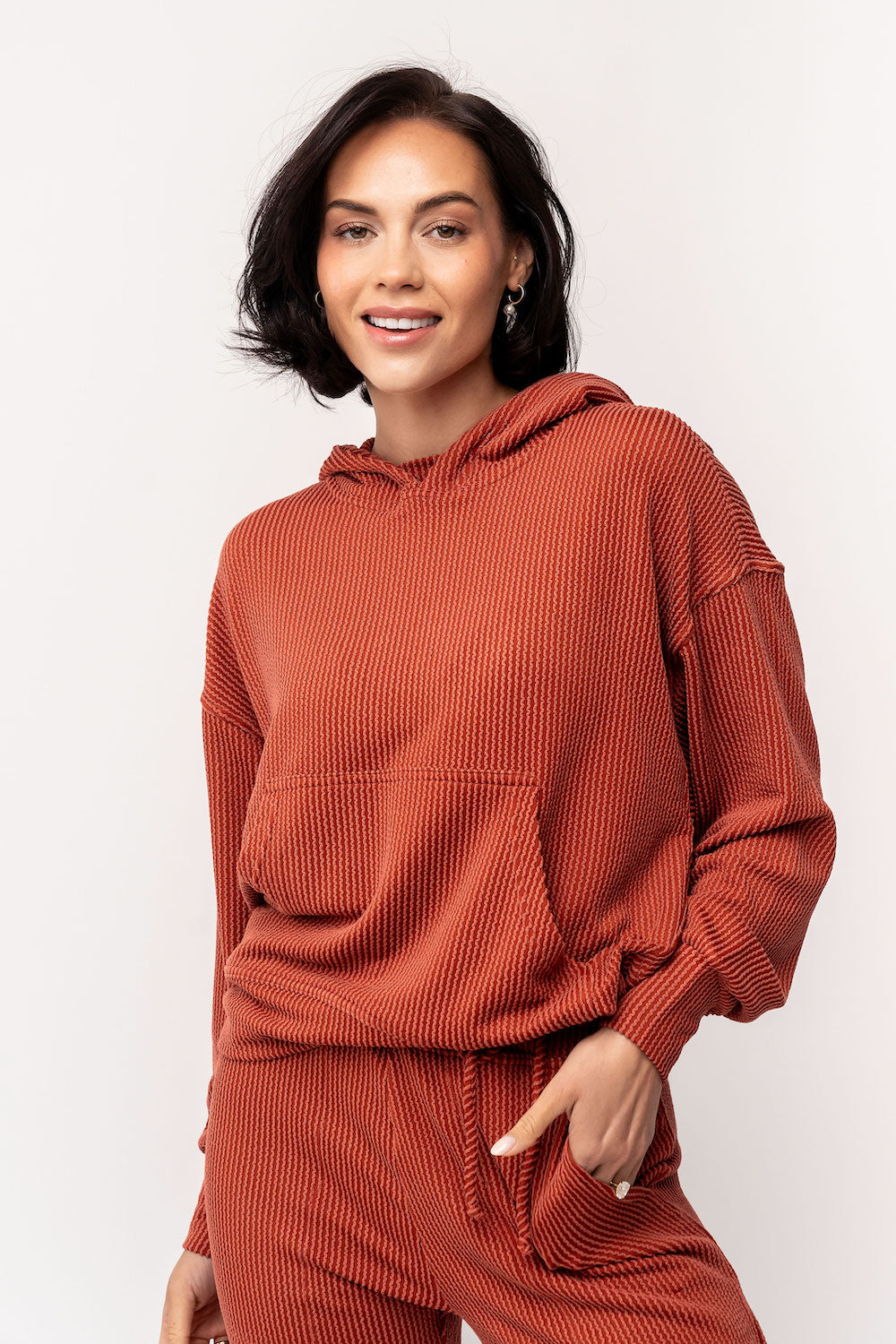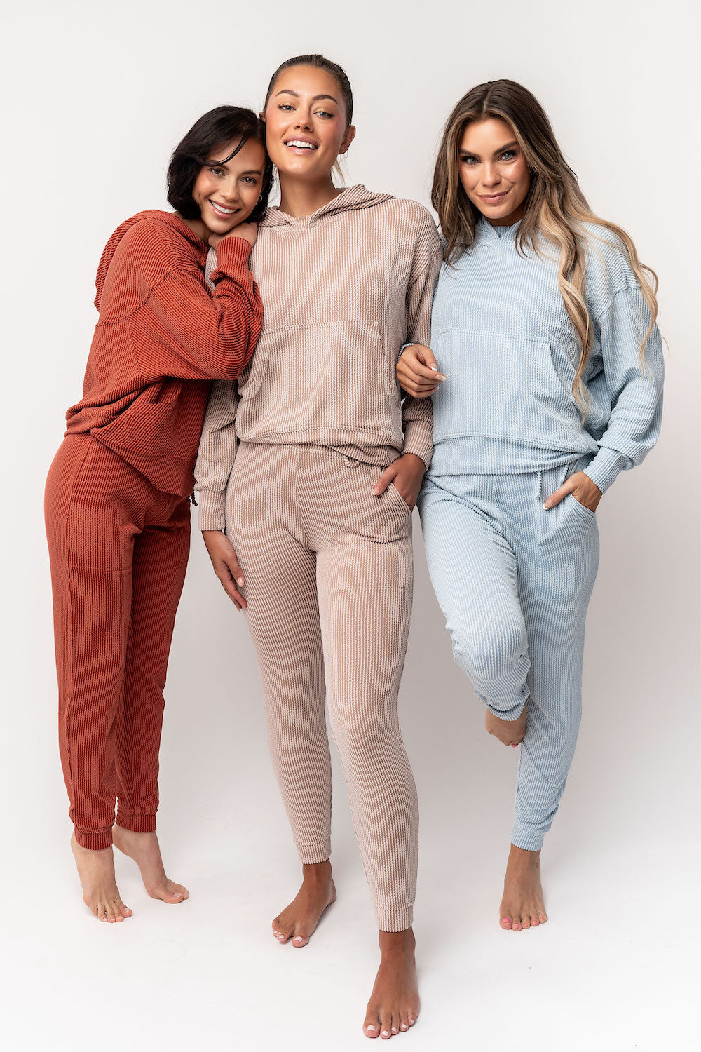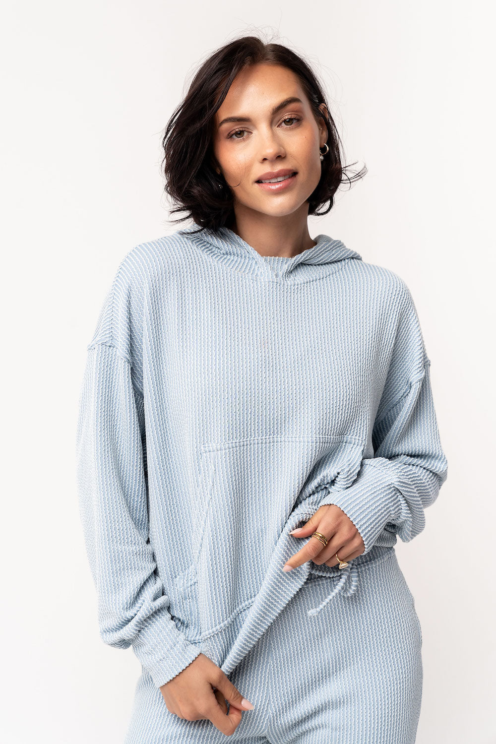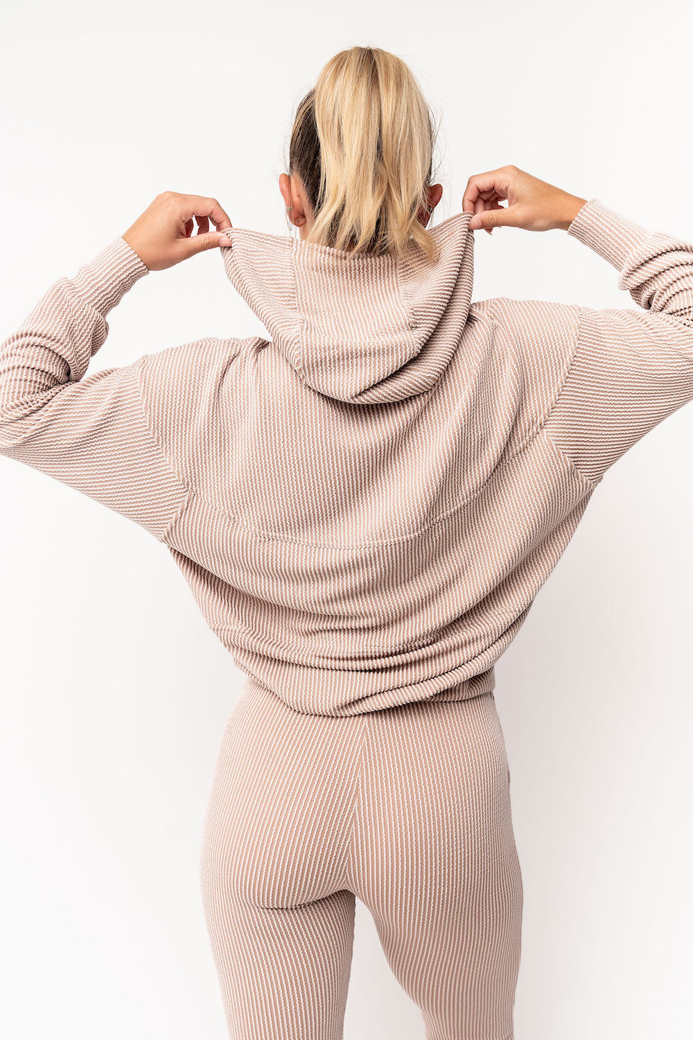 Many of you have asked, so we have answered. The SUNSET HOODIE has arrived to take your love for our best selling ‘Urban Love’ collection to the next level. Available in three all new colors, this pullover features the coveted wide hood and a kangaroo pocket for essentials on-the-go or to keep your hands cozy and warm in the cooler months ahead. Dreams do come true in this stretchy-soft blend of rayon, polyester and spandex with a ribbed texture that feels as good as it looks. SKU# 24SW2200