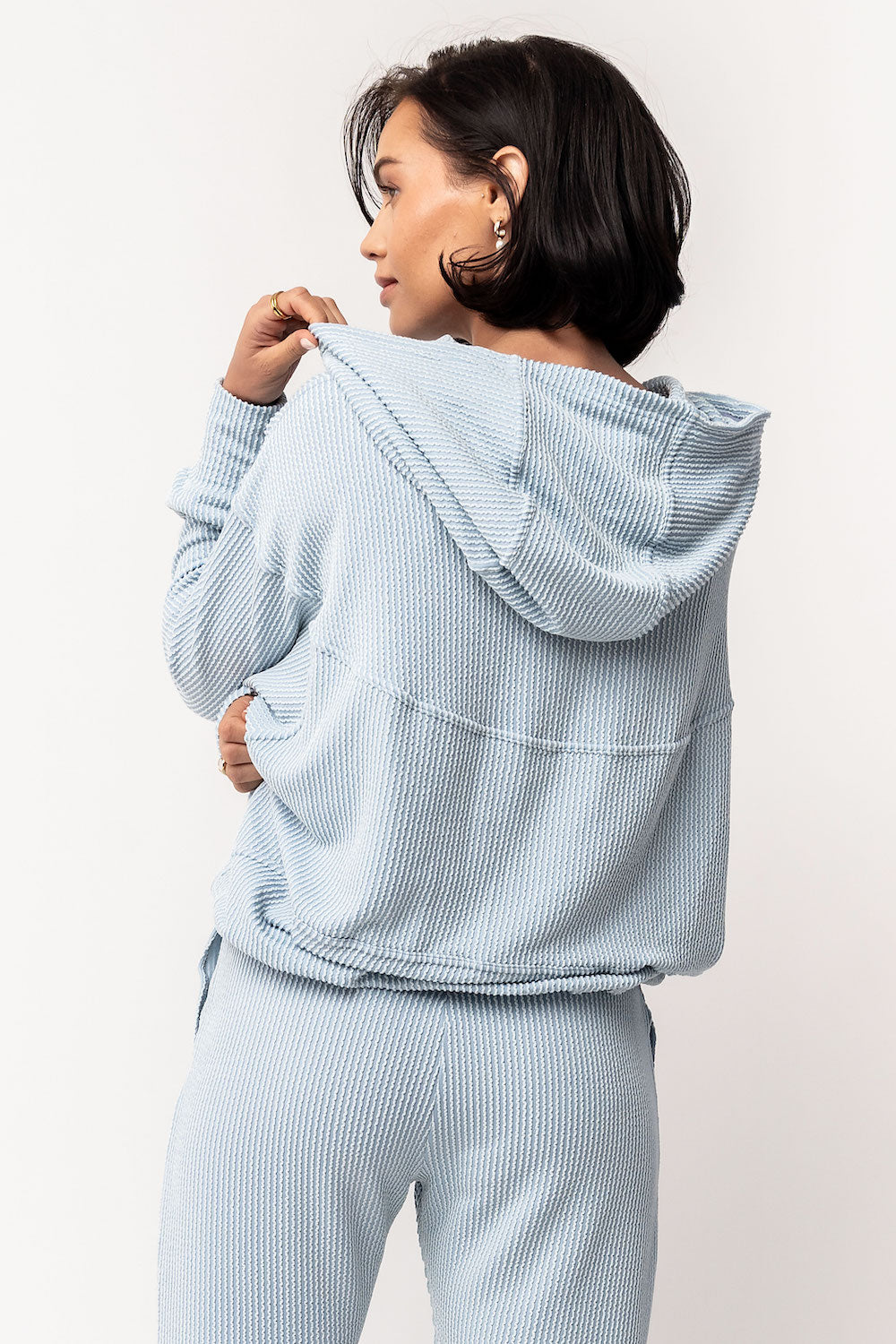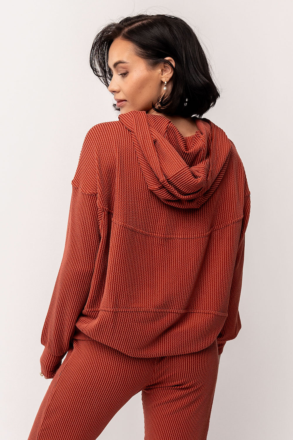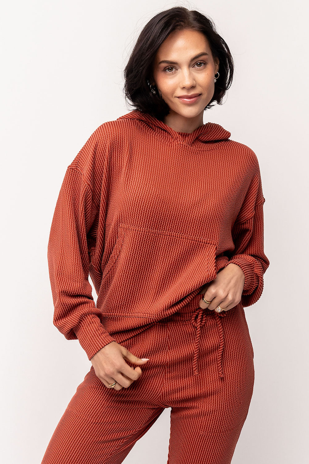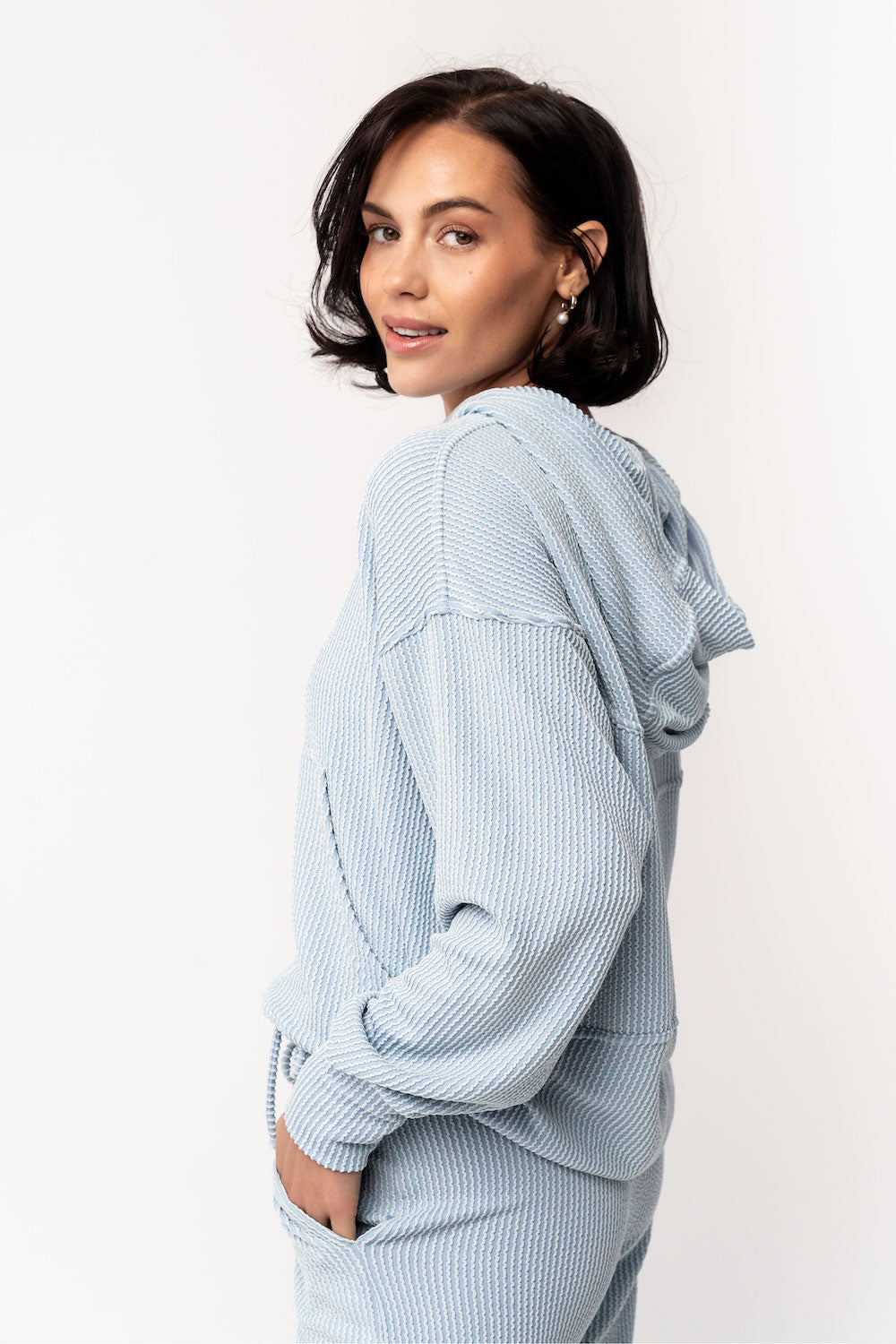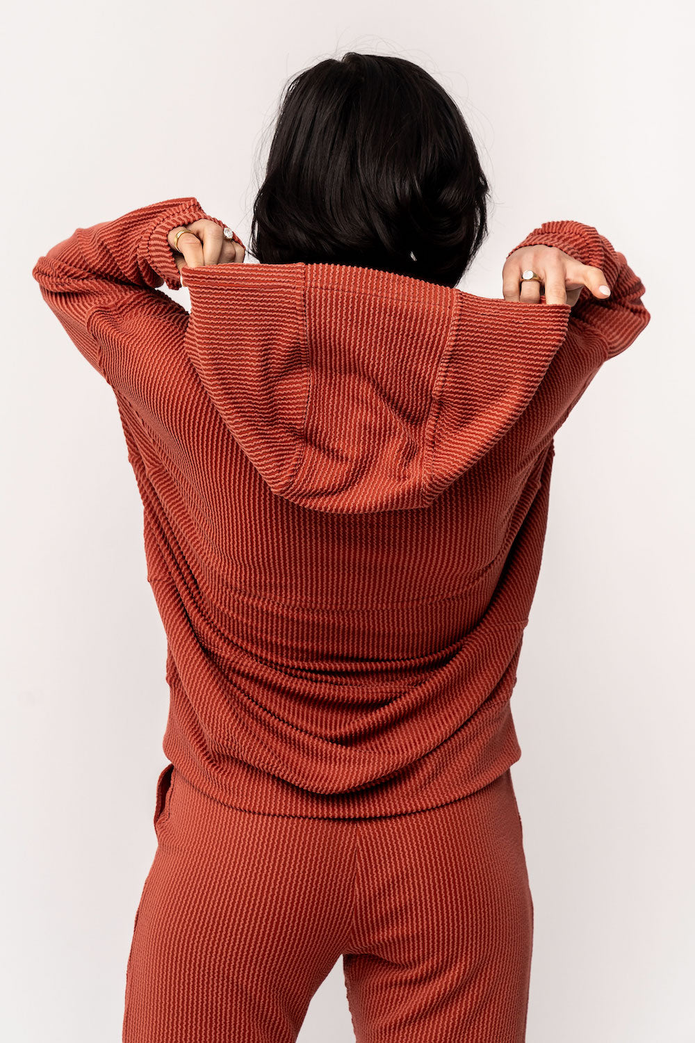Many of you have asked, so we have answered. The SUNSET HOODIE has arrived to take your love for our best selling ‘Urban Love’ collection to the next level. Available in three all new colors, this pullover features the coveted wide hood and a kangaroo pocket for essentials on-the-go or to keep your hands cozy and warm in the cooler months ahead. Dreams do come true in this stretchy-soft blend of rayon, polyester and spandex with a ribbed texture that feels as good as it looks. SKU# 24SW2200